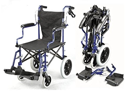 THIS IS THE DELUXE VERSION IN BLUE WITH ATTENDANT HANDBRAKES AND 12″ REAR WHEELS